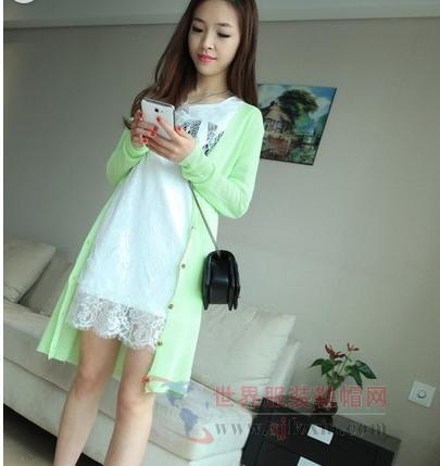 t恤款式的多變是必然發展趨勢,這款t恤和白色蕾絲的結合就是新款式之一,里面是簡單的字母t恤外面是白色蕾絲的罩衫,這款長t恤可直接當裙子穿搭,外搭一款更長的開衫防止走光很安心,顏色也顯得你很小清新。