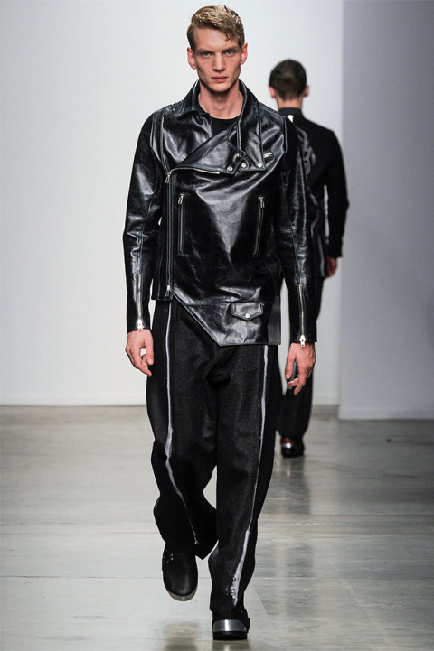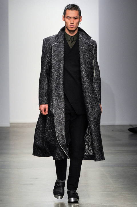 由著名設計師Siki Im創辦的同名服飾品牌于近日在紐約時裝周上發布了其2014秋冬系列,秉持一貫的前衛設計風格,將銳利的線條處理、平滑的輪廓過渡以及的層次感穿搭,透過彰顯成熟男士的暗黑色調和頗具藝術氣息的圖形紋理,來塑造出不同以往的西裝、大衣、針織衫、騎行夾克等經典男裝服飾。此外,Siki Im對于面料的拿捏也掐到好處,不僅質感十足,而且極具光澤感。