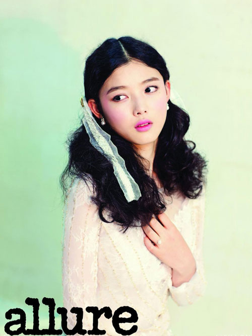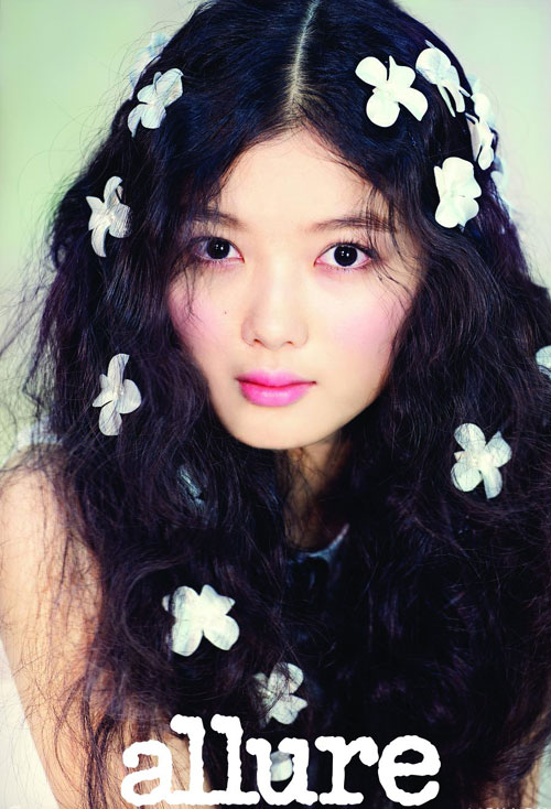 近日,藝人金有貞攜手某時髦雜志拍攝了一組寫真,烏黑濃密卷發上的白色花瓣裝飾,展示出金有貞如同羞澀少女般的清純魅力。