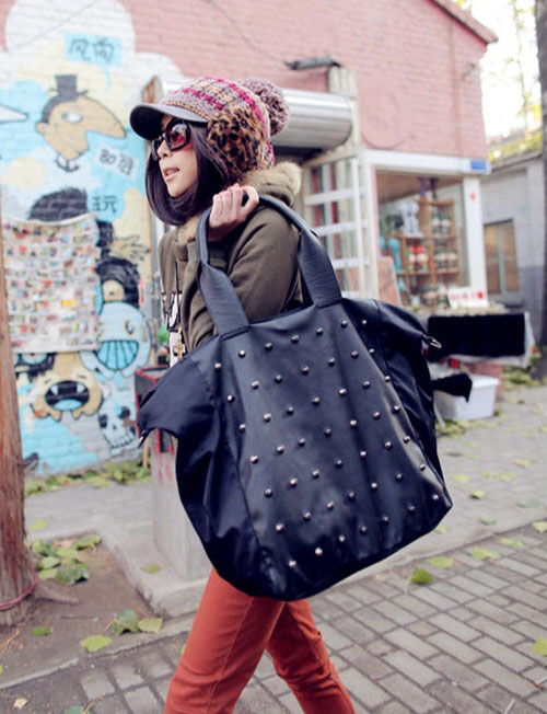 百搭黑色鉚釘元素點綴氣質單肩包,個性的鉚釘元素點綴其中,,極簡時尚的完美范。
