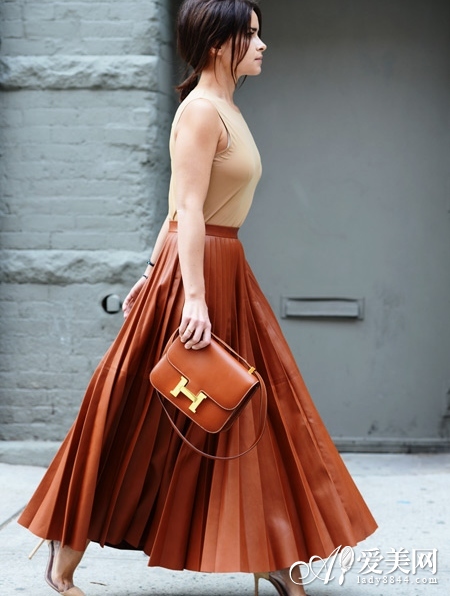 2013早秋的小羊皮百褶裙,珍珠扣西裝套裝以及帥氣的金屬片裝飾鞋履;