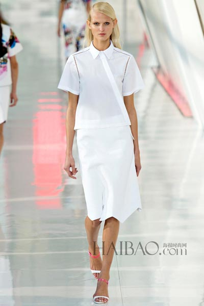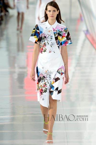 普林 (Preen) 2014春夏女裝秀如同一場熟悉的旅程,全白色集合與印花為主,錯落有致的長方形色塊與花卉圖案,融合清爽色彩呈現極簡主義與休閑運動感。白色、粉色和矢車菊藍色的調和,整個系列努力的展現著普林 (Preen) 的獨特風格。經典的絎縫、女性化輪廓、精致的裁剪成就很多品質優異的單品。