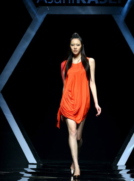 日前,模特在展示香港年輕時裝設計師盧聲前的時裝作品。當日,旭化成·中國時裝設計師創意大獎——盧聲前作品發布會在北京舉行的中國國際時裝周上舉行。